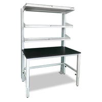 This bench a free standing, adjustable system to efficiently use available lab space. The shelves and countertop are adjustable as required.